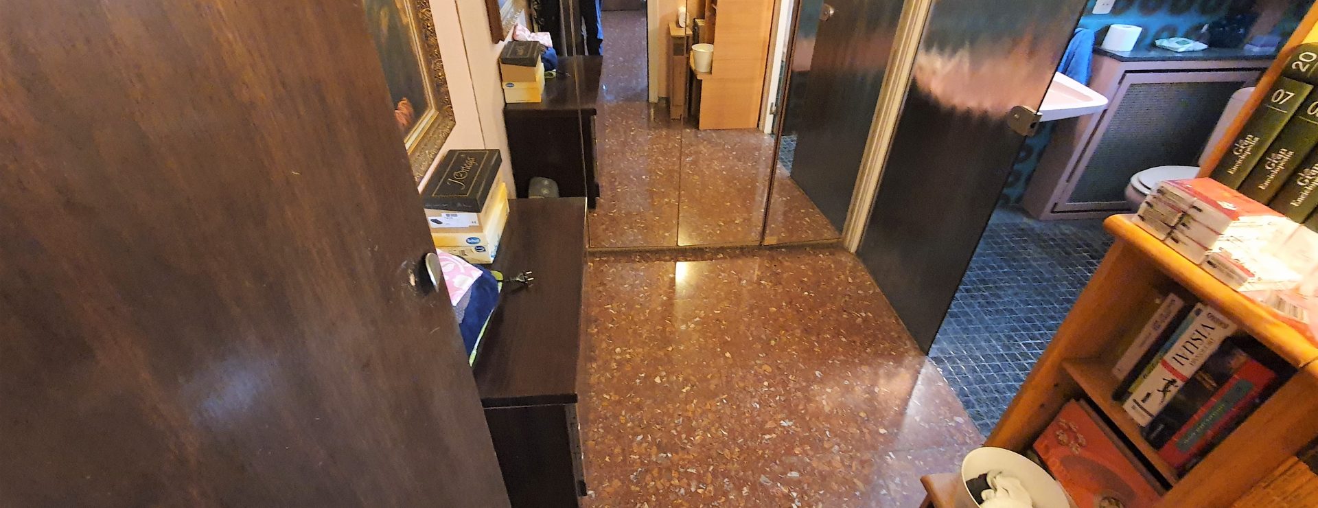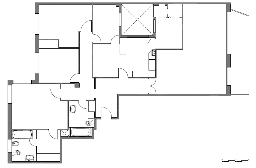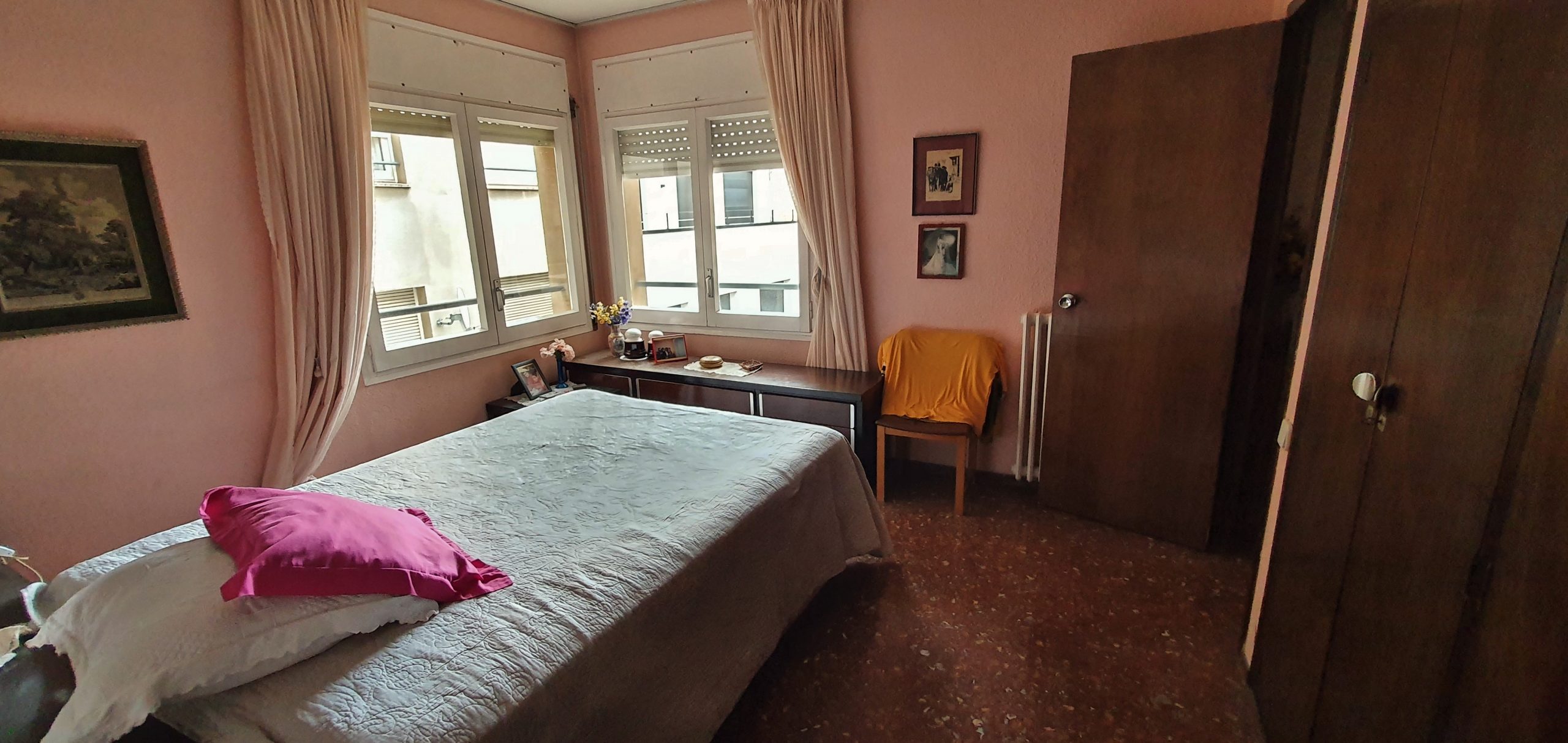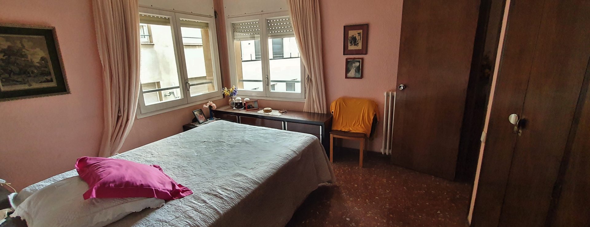 Por otro lado tenemos la zona de noche en la que hay 4 habitaciones (tres dobles exteriores a patio de manzana y una individual interior) y 2 baños completos (uno en suite y otro independiente).