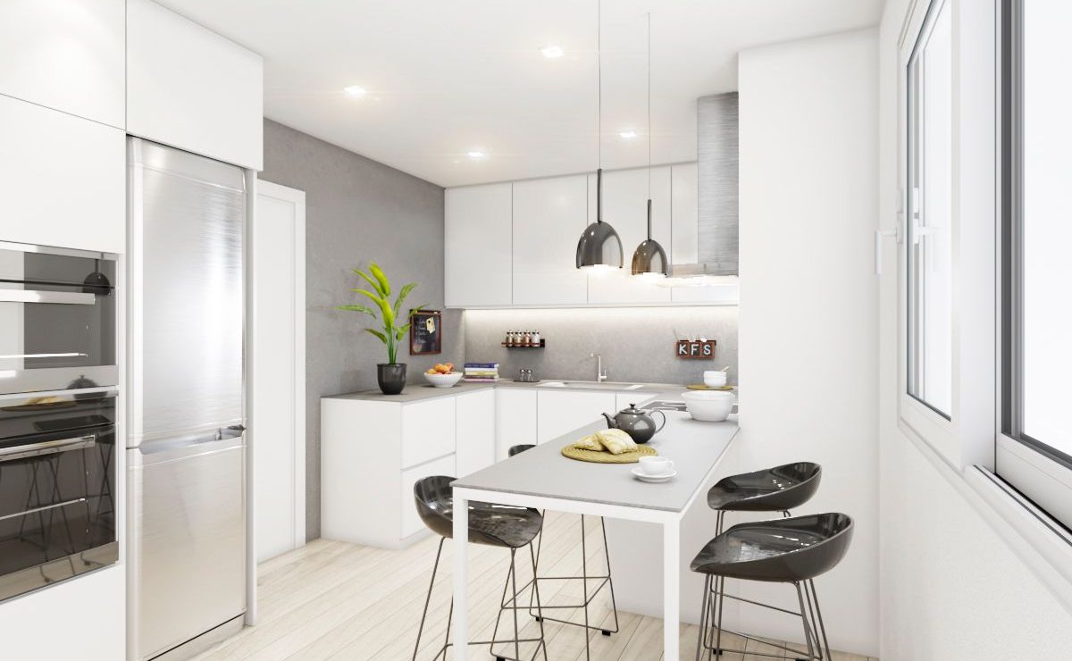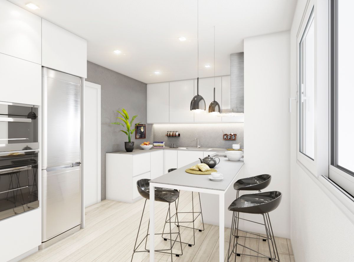 Finalmente desde el recibidor también, accedemos a la cocina office de 14m2 con acceso a una galería y despensa.
