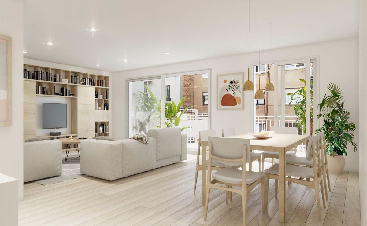 Desde el recibidor accedemos a la zona de día en la que se encuentra un gran salón de 36m2 con acceso a la terraza exterior de 10m2.